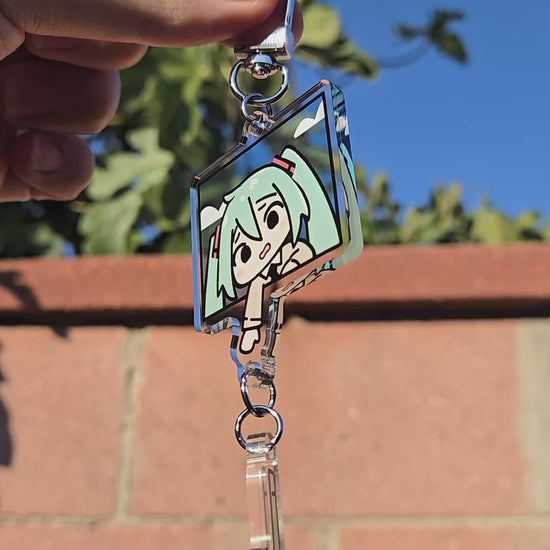 Keychain Version of the cutest "miku drops her leek" sticker!